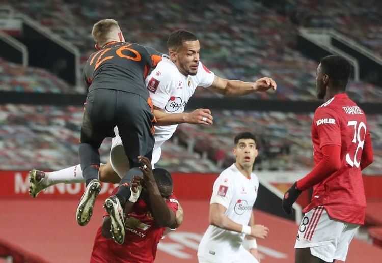 主裁判哨声一响,上半场比赛开始了,比赛刚刚开始,曼联就获得反击机会,可惜詹姆斯左路传中力量稍大,格林伍德没能包抄到位。第5分钟,曼联闪电进球!曼联获得角球机会特莱斯把球开出,麦克托米奈头球冲顶砸在立柱上反弹入网,曼联1-0沃特福德。第11分钟,麦克托米奈传球失误,萨尔抢断后长驱直入突入禁区打门被图安泽贝封堵出来。第16分钟,沃特福德开出前场任意球,前点一蹭,马西纳插上凌空垫射被图安泽贝解围。第23分钟,纳瓦罗右路传中,安迪-格雷头球攻门被拜利干扰没顶上力量被迪恩-亨德森没收。第29分钟,萨尔前场抢断特莱斯后小角度吊射偏出立柱。第32分钟,拜利禁区内疑似手球犯规,经过VAR回放,裁判并没有判罚。 下半场易边再战,第47分钟,辛克纳格尔得球,迅速传给若昂-佩德罗,后者得球后一脚远射,但皮球高出横梁。第69分钟,曼联做出调整,拉什福德和马夏尔换下詹姆斯和格林伍德,曼联加力求再次进球,确保领先优势。第73分钟,瑟马主罚前场右路任意球直接打门偏出立柱。第89分钟,瑟马开出前场任意球,迪恩-亨德森出击将球没收。补时阶段,曼联获得禁区弧顶任意球,但马塔主罚直接高了球门。
