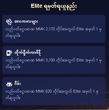 SBOTOP VIP Elite ကလပ်တွင် အမှတ်များရယူနည်းအား အောက်တွင်ကြည့်ပါ။