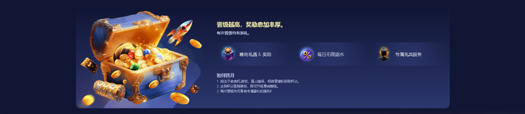 SBOTOP尊尚俱乐部彰显了平台对忠实玩家提供卓越服务的坚定承诺。凭借丰富的独家福利和专属礼遇,成为VIP会员是每位玩家的梦想。如果您渴望体验与众不同的游戏世界,加入SBOTOP尊尚俱乐部,尽享尊贵特权。